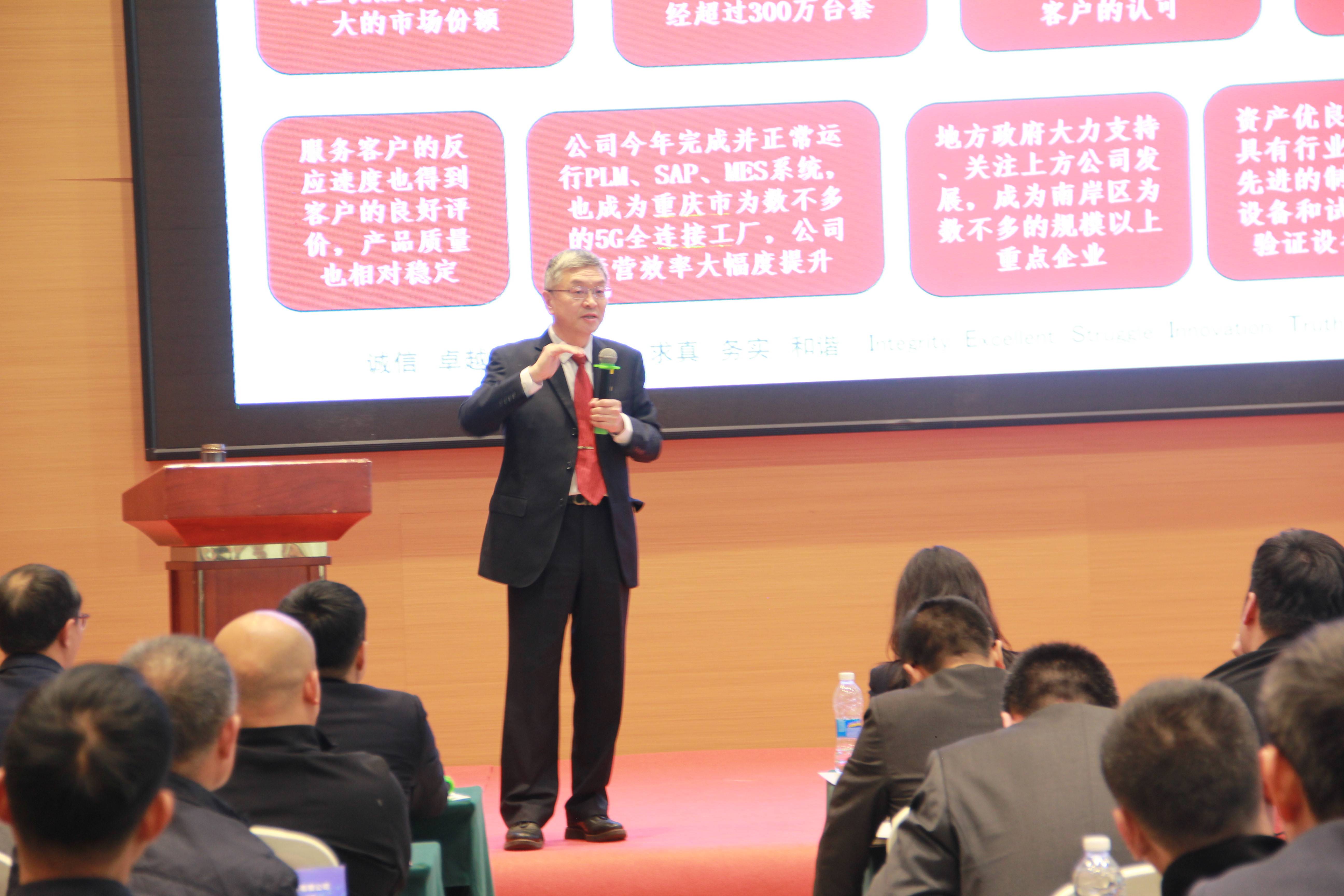 最后重庆上方总经理李晓林作“同心协力 共创未来”主题发言。李晓林总经理全面剖析了汽车市场现状,阐述了国家一系列扶持政策为行业发展注入强大动力;详细分析了重庆上方优势、资源以及未来发展规划。在产品方向、技术进步方面,明确了重庆上方未来产品的定位与拓展路径,鼓励全体供应商朋友要提前做好相应的配套准备,报告还展示了公司新项目获得情况,指出公司已成功中标多个头部车企订单。最后聚焦到2025年目标,指出全体供应商朋友要提升产能、稳定质量、降低成本、扩充品类、快速反应、相互合作,为大家共同奋斗提供精准目标。