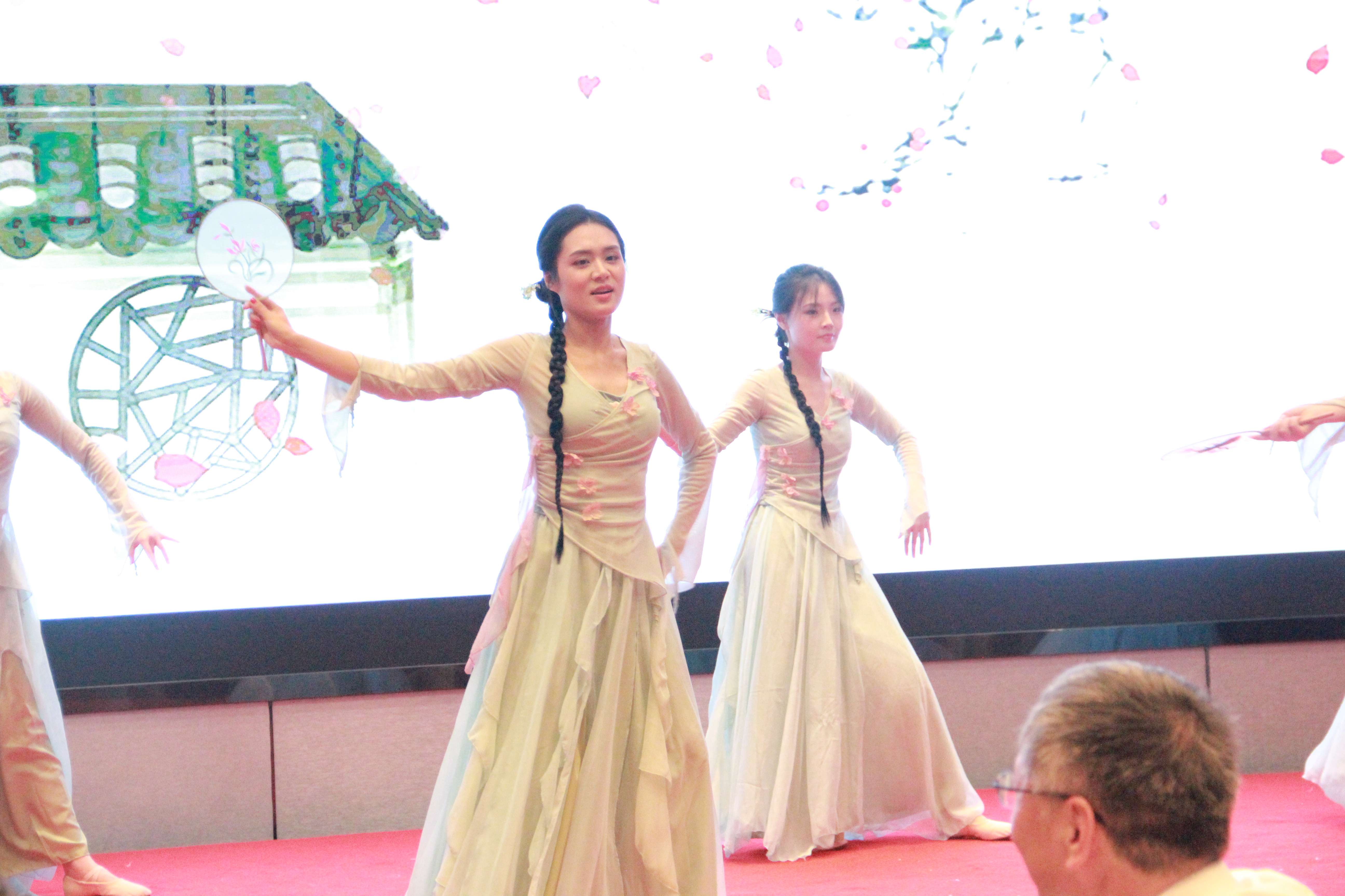 古风音乐响起,瞬间将观众带到了小桥流水、杨柳依依的江南水乡。舞者们身着飘逸的衣裙,伴随着悠扬的古典音乐翩翩起舞。轻盈的舞姿、灵动的手势、精巧的团扇,每一个动作都尽显古韵之美,仿佛让人穿越到西湖畔的邂逅。