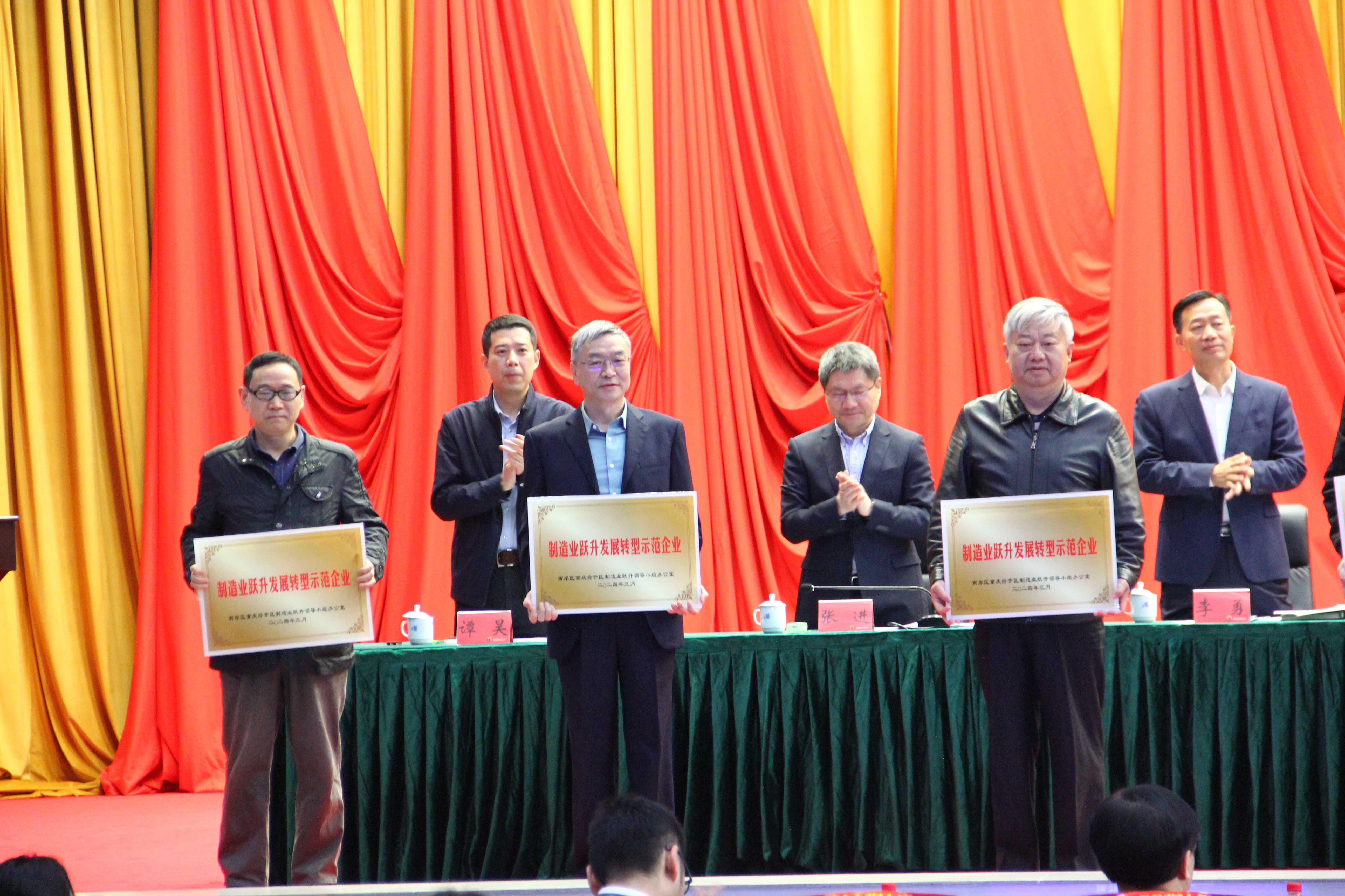 会上,南岸区重庆经开区领导为公司颁授“制造业跃升发展转型示范企业”荣誉牌,公司还获得“2023年增产增效先进企业”、“2023年加大投资先进企业”和“2023年转型升级先进企业”荣誉,公司总经理李晓林还与经开区政府签订了2024年产能跃升合作备忘录。